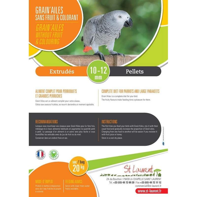 GRAIN’AILES® all natural is a complete feed for parrots and large parakeets.