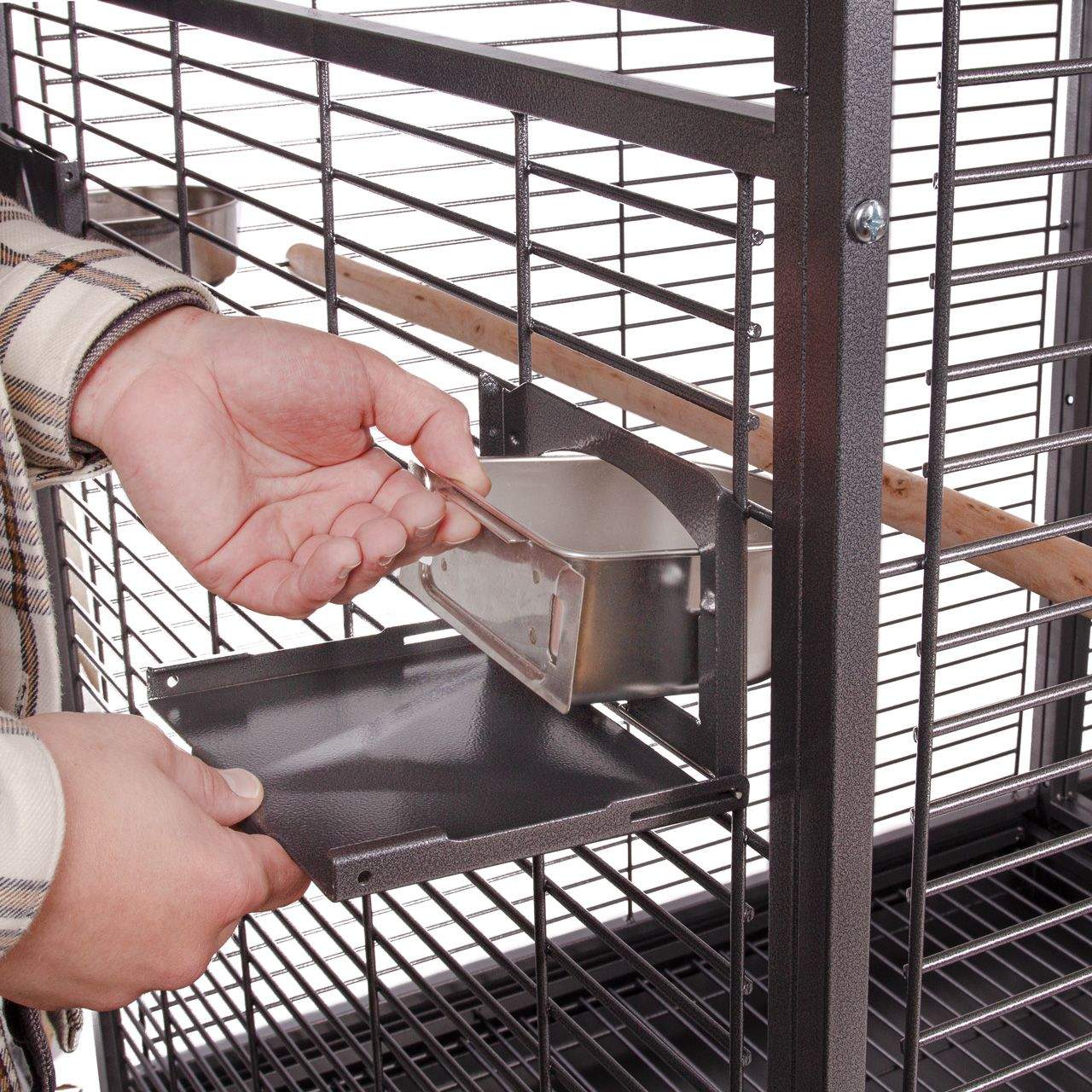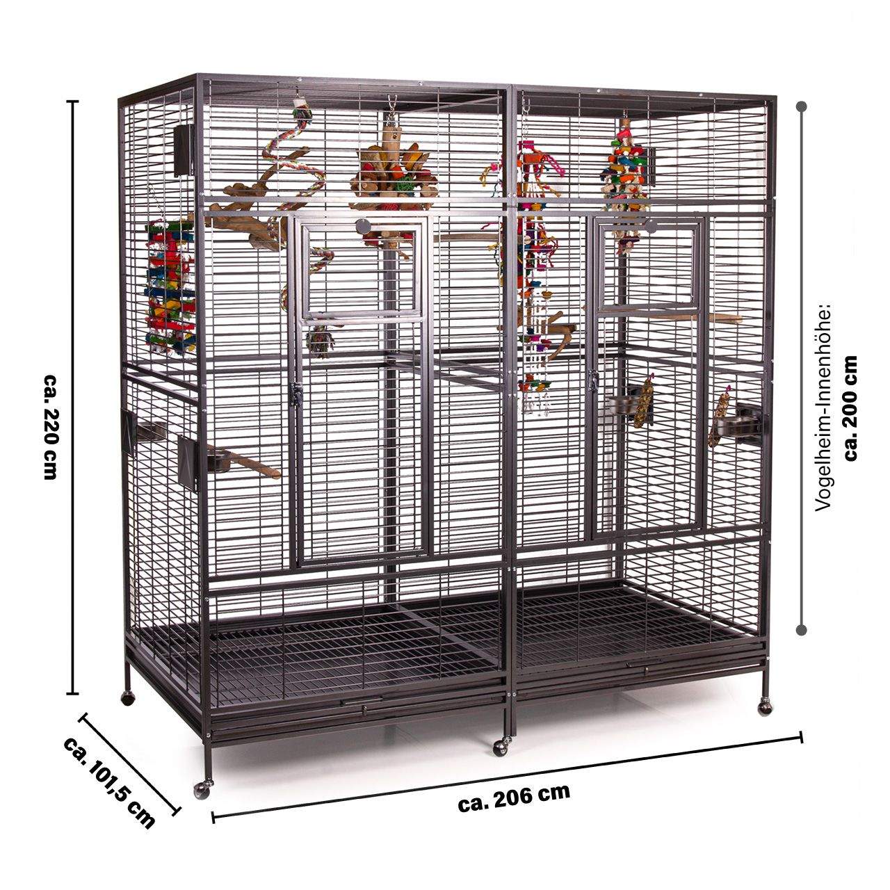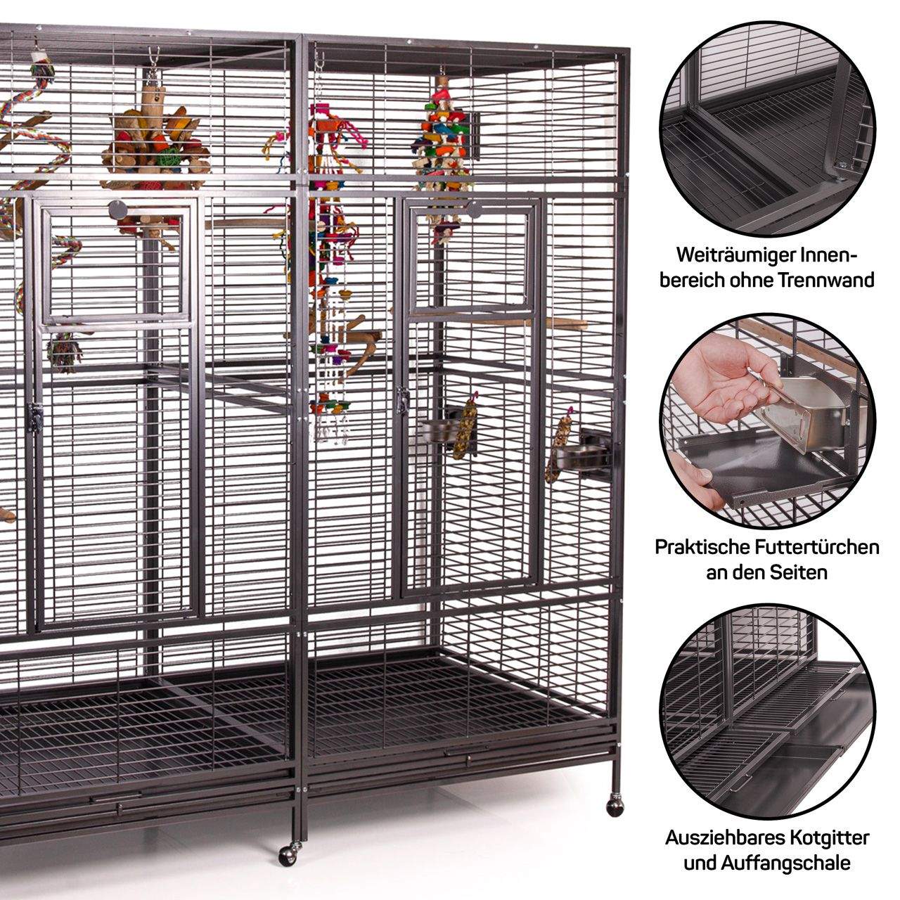 The Arkansas II is the ultimate parrot home. with a removable partition. In addition, there are also extension kits as accessories, so that this model can be widened as desired. Large feathered friends have enough space here. Of course, the scope of delivery includes stainless steel bowls, perch, removable manure grid and stable castor feet. A gigantic parrot home in tried and tested quality!