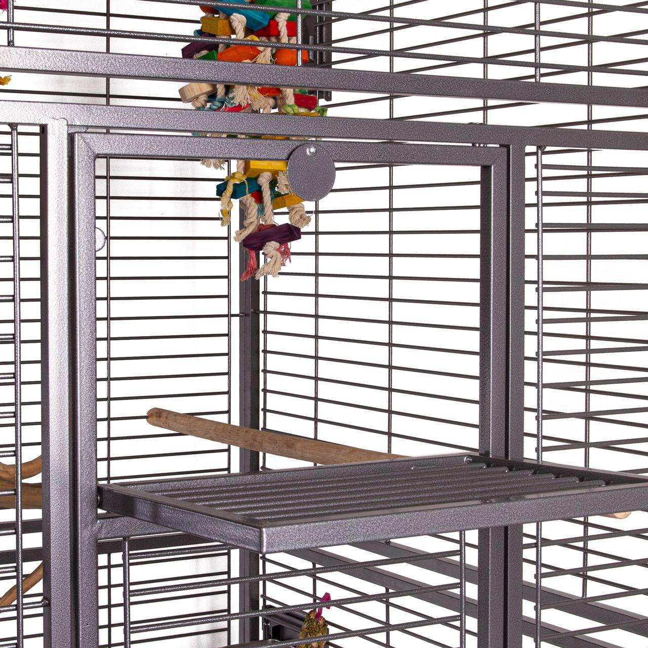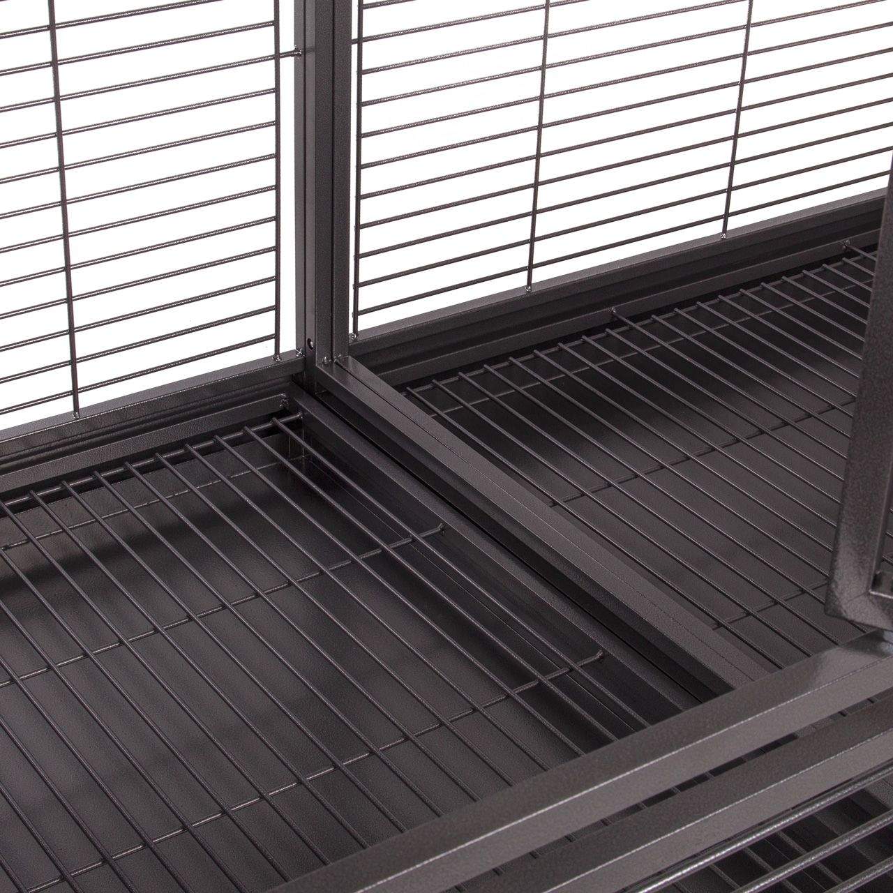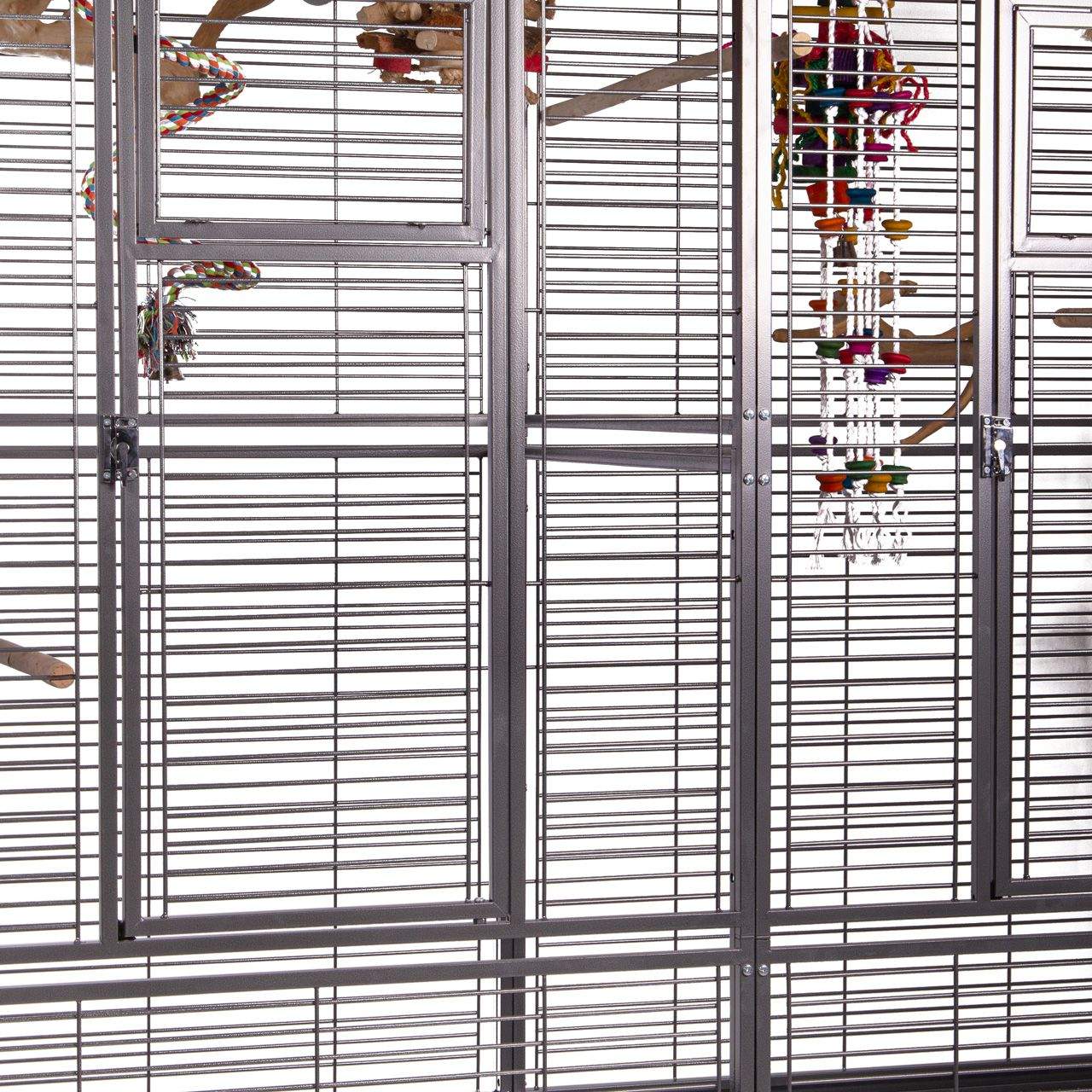 The Arkansas II is the ultimate parrot home. with a removable partition. In addition, there are also extension kits as accessories, so that this model can be widened as desired. Large feathered friends have enough space here. Of course, the scope of delivery includes stainless steel bowls, perch, removable manure grid and stable castor feet. A gigantic parrot home in tried and tested quality!