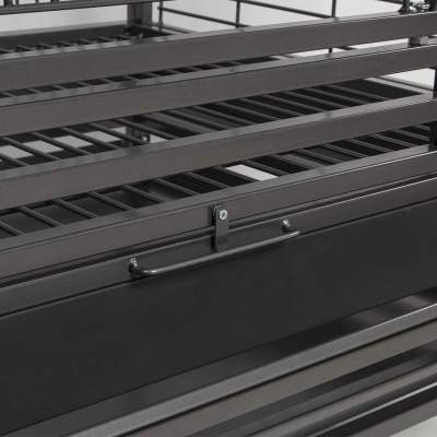 We supply you with this particularly spacious model including a perch, four outer lining doors with stainless steel bowls, nesting box doors and a collection apron that prevents leftover food from falling out. The Castell Dome also has a removable manure grid and stable castor feet. This model is also equipped with the popular approach flap.